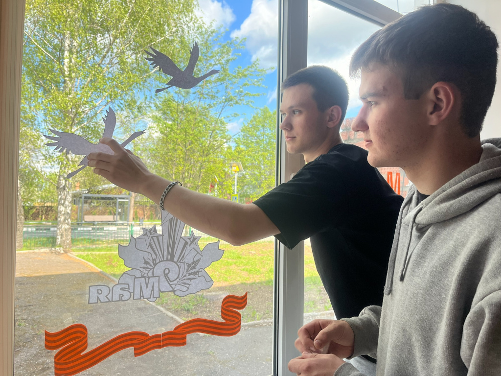 Эта акция — не просто творческая инициатива, а настоящий знак памяти и признательности героям Великой Отечественной войны. Студенты и преподаватели Бронницкого филиала МАДИ с воодушевлением украсили окна вуза патриотичными рисунками: изображениями голубей, Георгиевских лент, красных звёзд и слов благодарности «Спасибо за Победу!».
