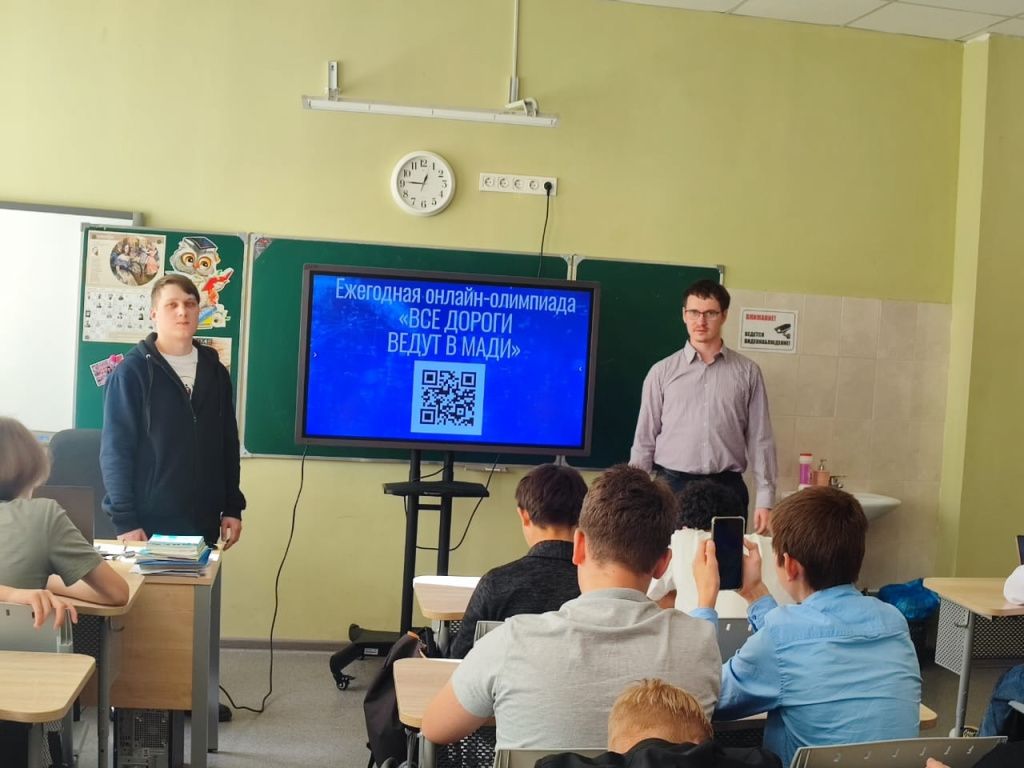 🧑💻🛣🛻 Мероприятие началось с приветственного слова Евгения Сергеевича, который рассказал школьникам о направлениях подготовки, особенностях обучения и преимуществах получения образования именно в Подмосковном институте (филиал) МАДИ.