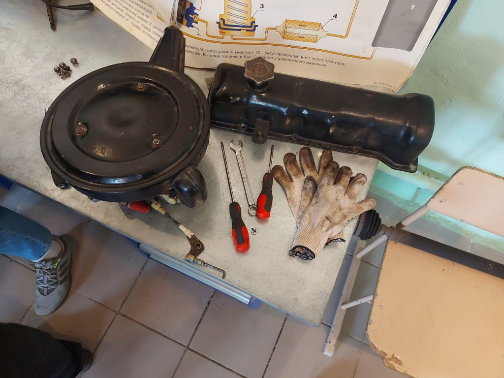 Во время занятия студенты пошагово выполняли демонтаж и осмотр топливной системы.