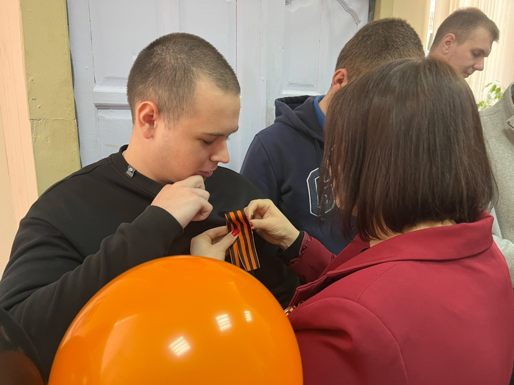 В торжественной обстановке ведущие мероприятия вручили Георгиевские ленты студентам, напомнив, что этот символ объединяет поколения и хранит в себе дух Победы.