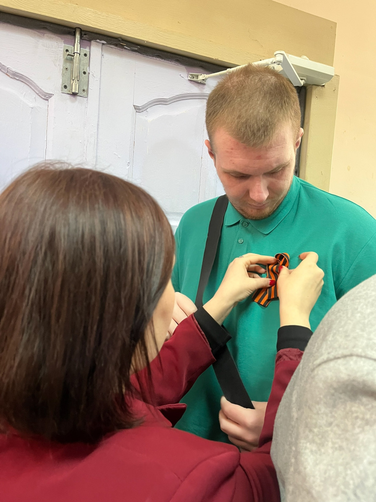 📅 Сегодня старший преподаватель Поляков Михаил Сергеевич и председатель Студенческого совета и Совета Первых Гаврилина Юлия провели мероприятие «Символы Победы», посвящённое истории одного из самых узнаваемых символов воинской славы — Георгиевской ленты.