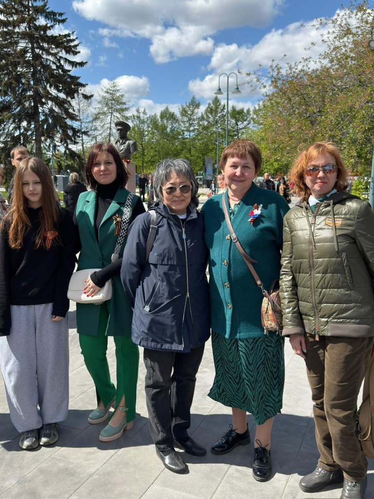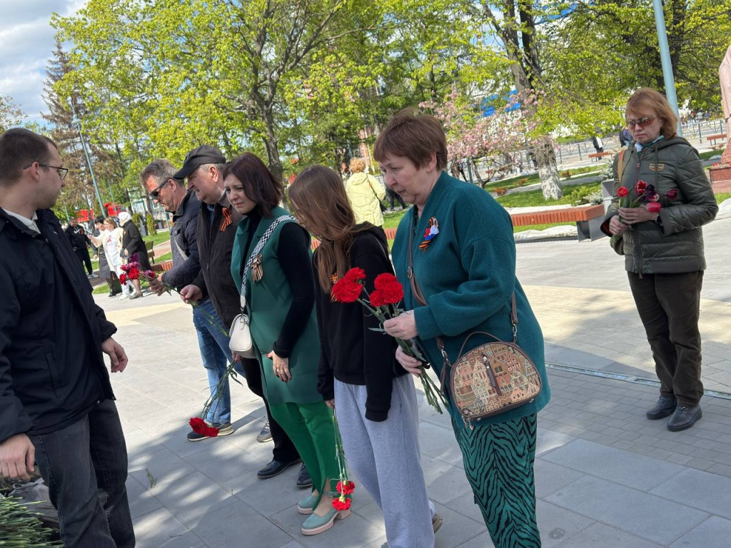 Студенты и сотрудники филиала также приняли участие в церемонии возложения цветов к Вечному Огню — символу вечной памяти и благодарности всем, кто сражался за свободу Родины. В этот день звучали слова благодарности, стихи и песни, посвящённые подвигу народа-победителя.