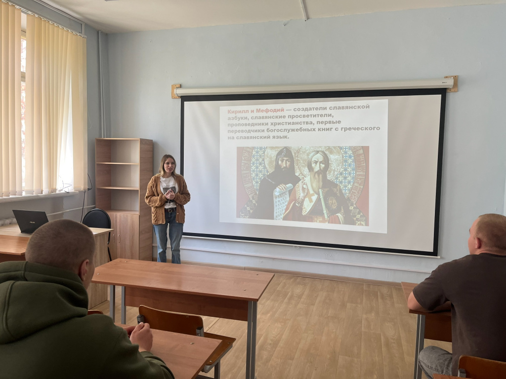 В преддверии праздника Дня славянской письменности и культуры специалист по учебно-методической работе Бронницкого филиала МАДИ — Мирошникова Юлия Максимовна — провела тематическую лекцию для студентов четвертого курса.